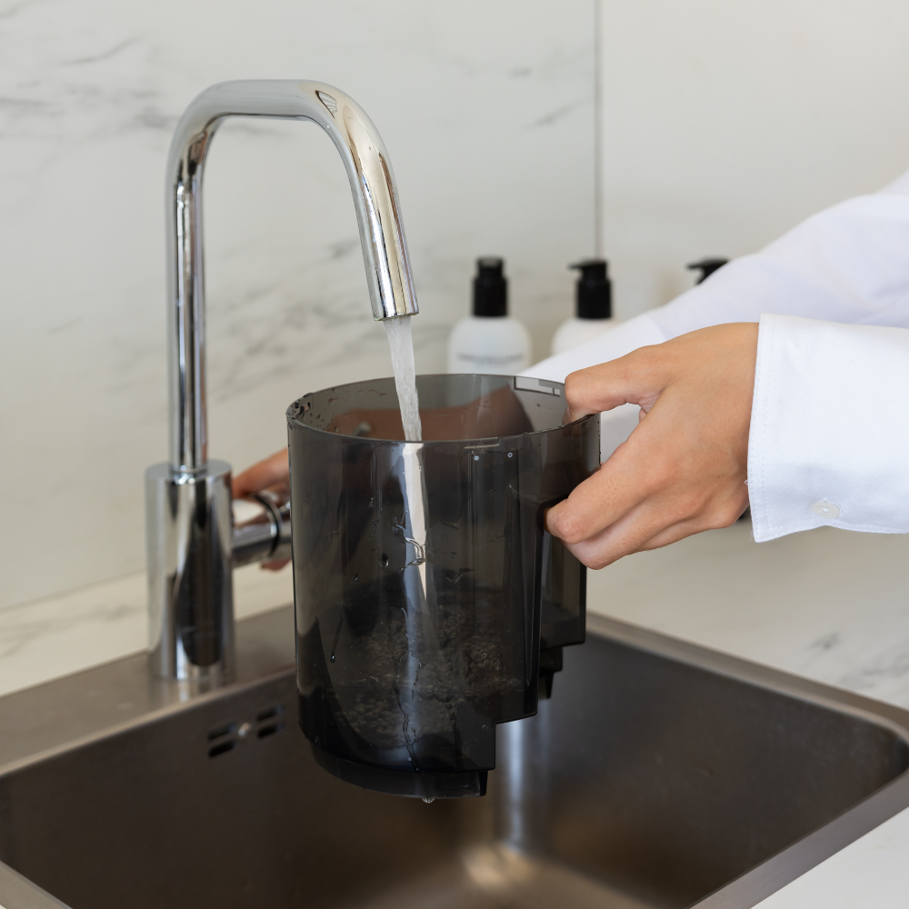 • Dubbeltank-systeem voor hygiënisch schoonmaken